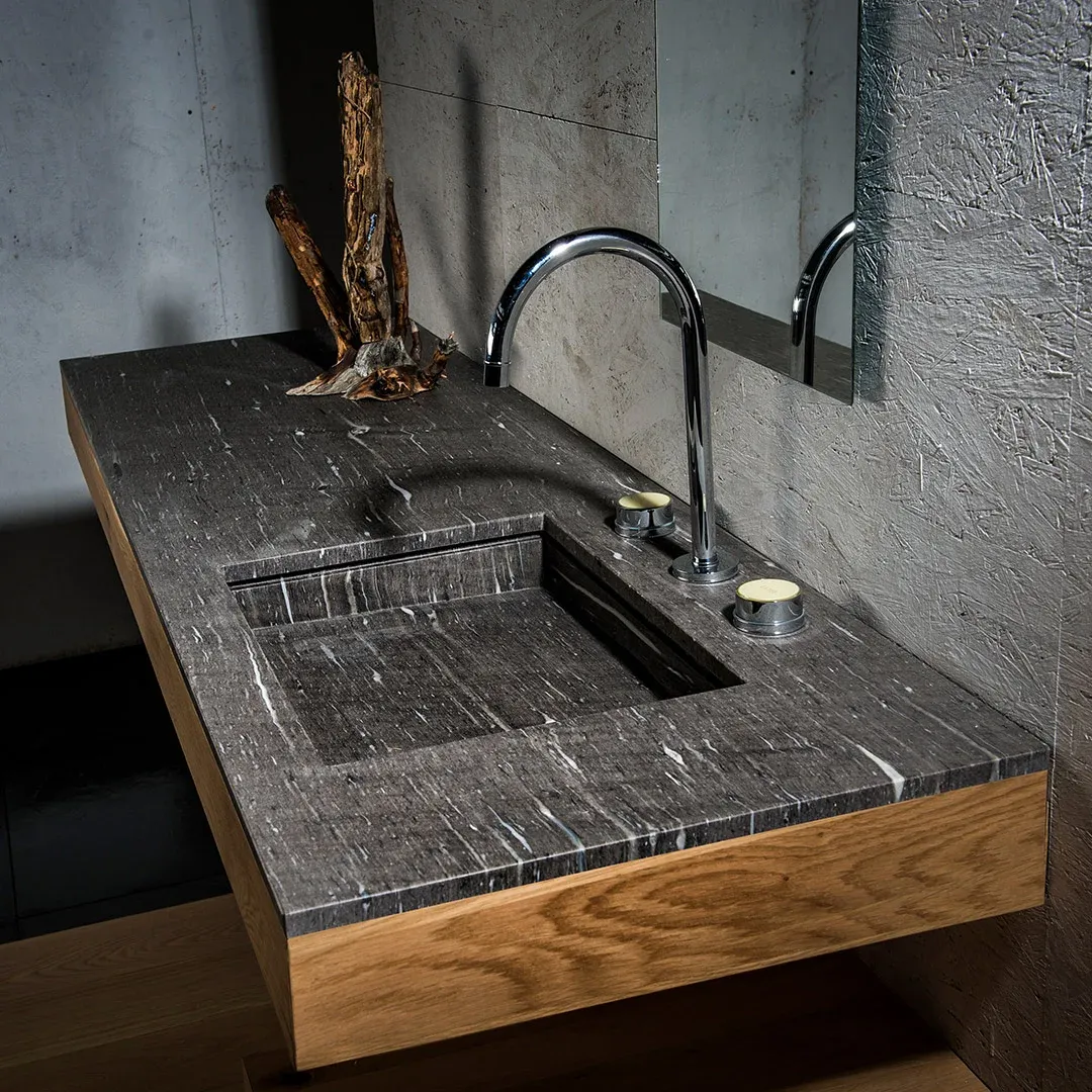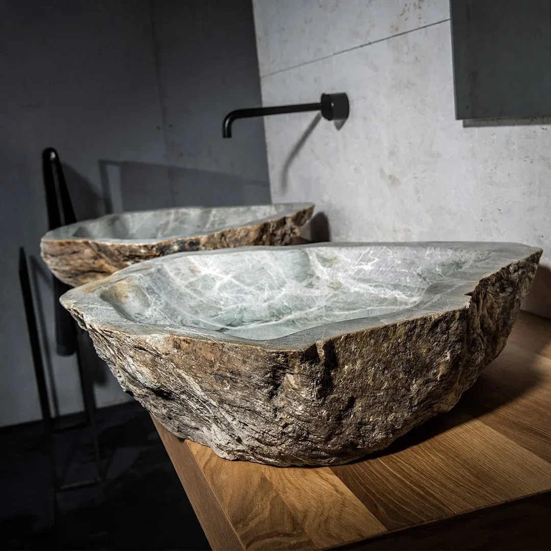Sie sind eine Oase der Entspannung und Ruhe. Heutzutage können alle Badezimmermöbel aus Naturstein entworfen und gestaltet werden, angefangen von Waschbecken und Badewannen bis hin zu Duschrückwänden und Duschtassen aus Naturstein.